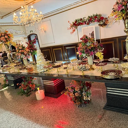 Nossa área de buffet foi cuidadosamente projetada para oferecer uma experiência gastronômica marcada pelo alto requinte e sofisticação. O grande destaque é a imponente mesa de mármore, que une elegância atemporal e acabamento impecável, criando um cenário luxuoso e acolhedor. Cada detalhe foi pensado para valorizar a apresentação dos pratos, proporcionando harmonia entre estética e funcionalidade. A nobreza do mármore, aliada à iluminação estratégica e à disposição refinada dos elementos, transforma o momento do servir em uma verdadeira experiência sensorial. Mais do que um espaço para refeições, nossa área de buffet é um ambiente que encanta, impressiona e eleva o padrão de qualquer evento.