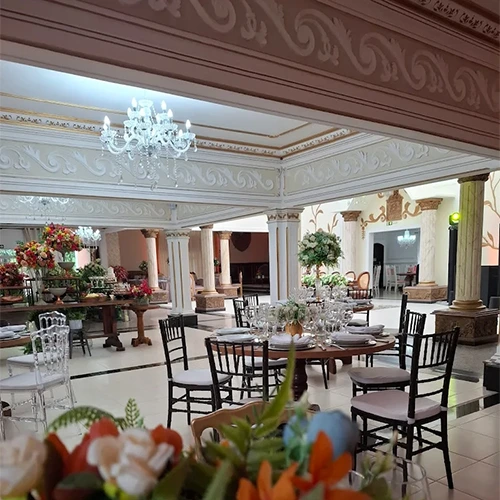 Nossos amplos salões foram projetados para oferecer conforto, sofisticação e versatilidade em cada detalhe. Com espaços generosos e arquitetura harmoniosa, proporcionam liberdade para diferentes formatos de eventos, sempre com fluidez e requinte. A combinação entre iluminação estratégica, acabamentos refinados e ambientação cuidadosamente planejada cria um cenário imponente e acolhedor ao mesmo tempo. Cada ambiente transmite elegância natural, valorizando a experiência dos convidados e elevando o padrão de qualquer celebração. Aqui, espaço e sofisticação caminham juntos para transformar momentos especiais em experiências memoráveis.